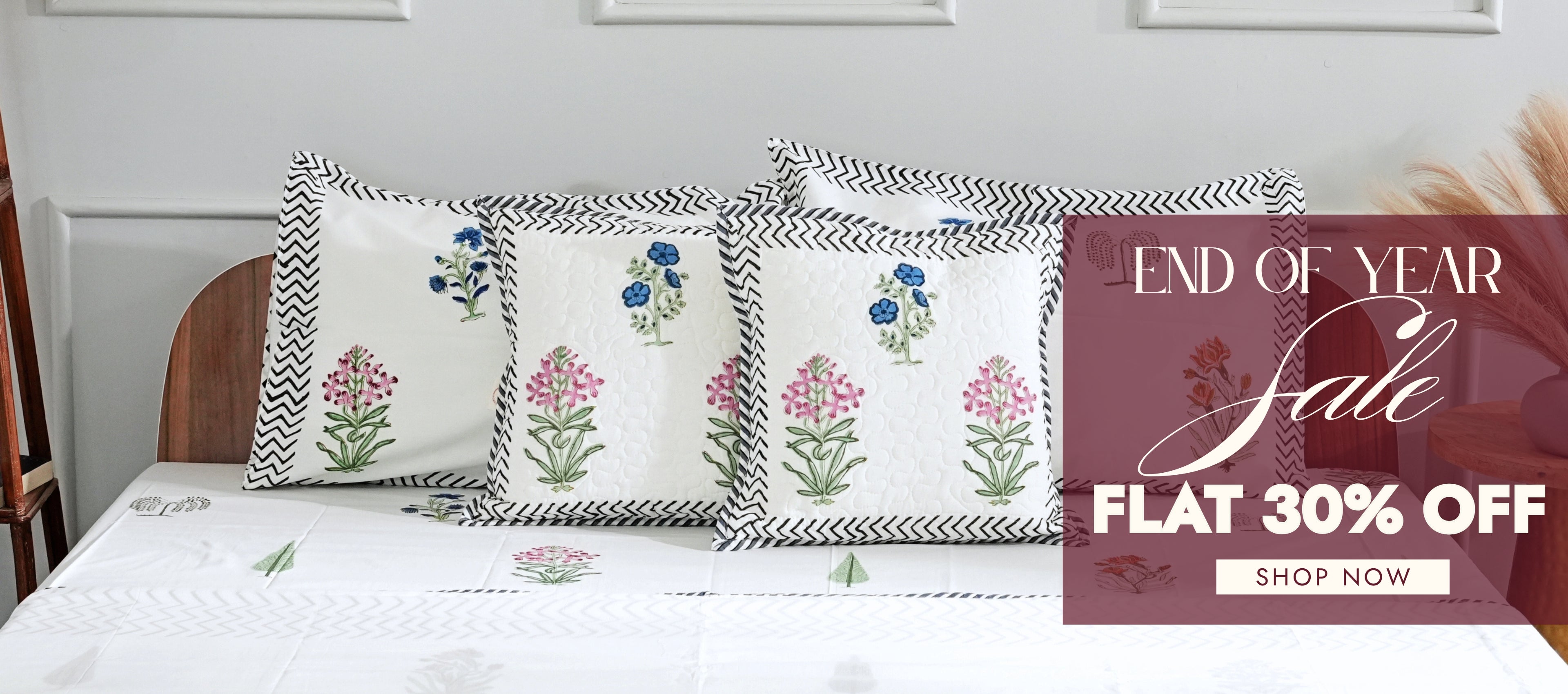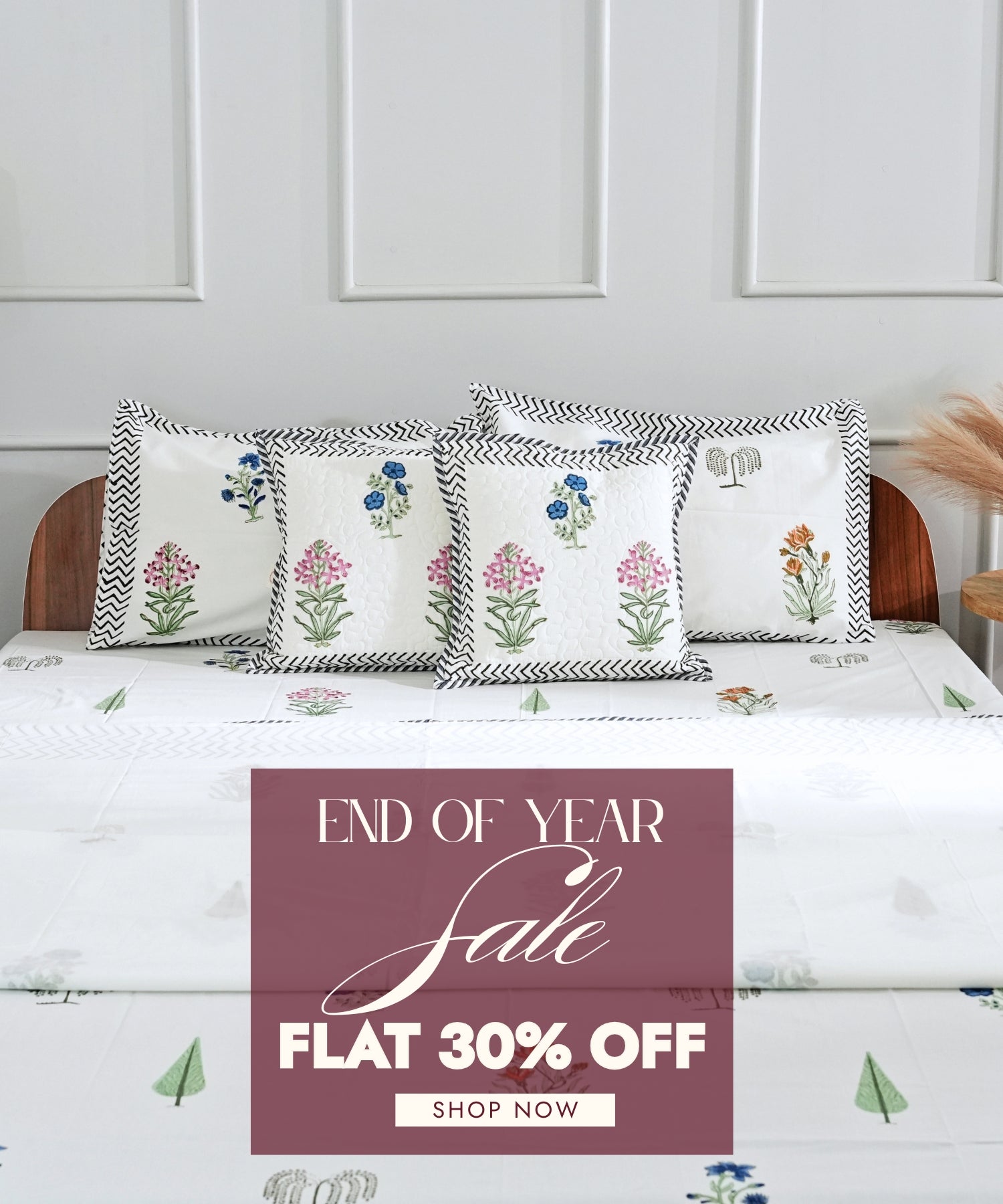 - Bedsheets: Breathable, block-printed cotton bedsheets for restful nights