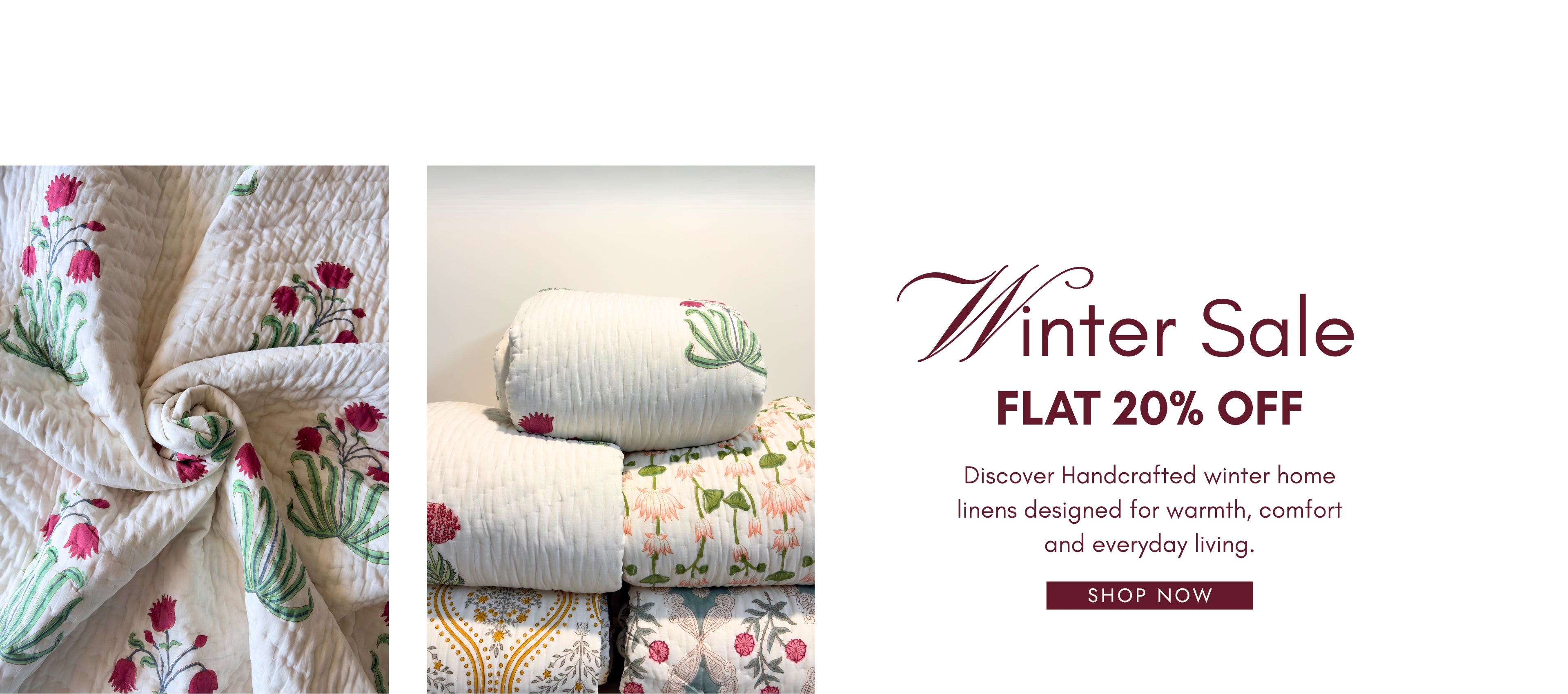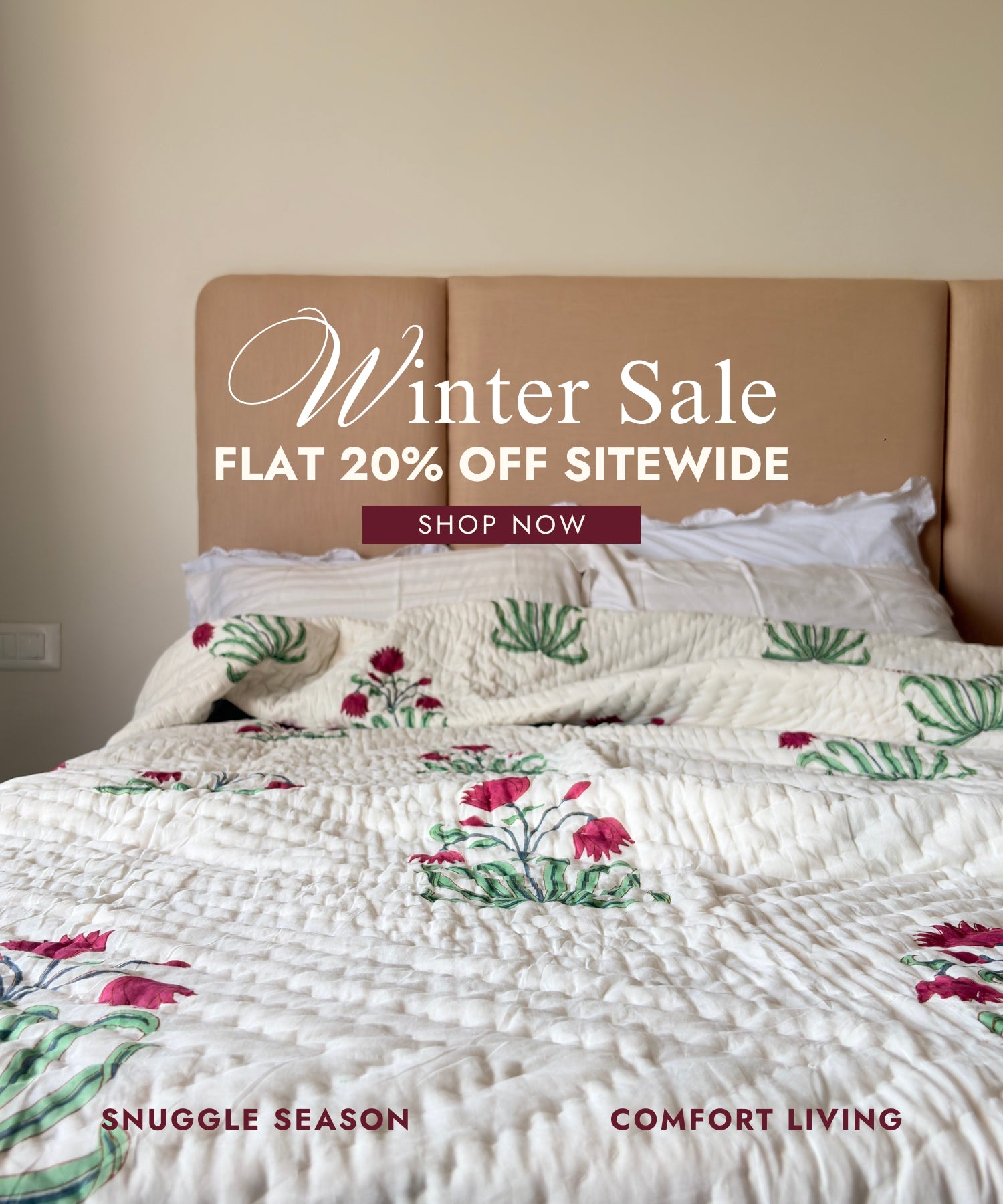 Discover our reversible cotton quilts, hand-block printed by Jaipur artisans. Made from breathable organic cotton, they’re perfect for year-round comfort and artisanal charm.