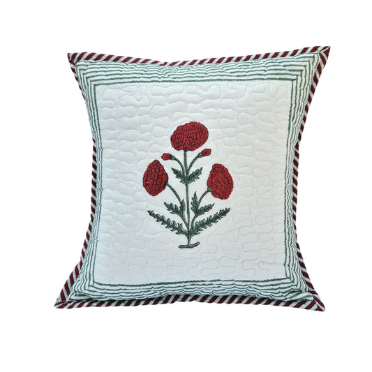 Jharokha Bloom Quilted Cotton Cushion Cover