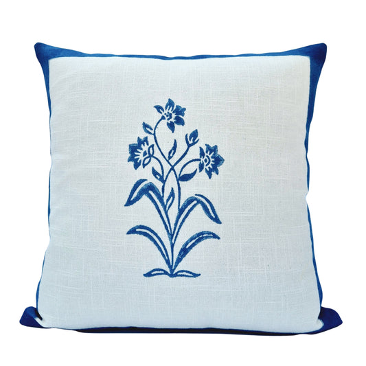 Indigo Bloom Slub Cotton Cushion Cover