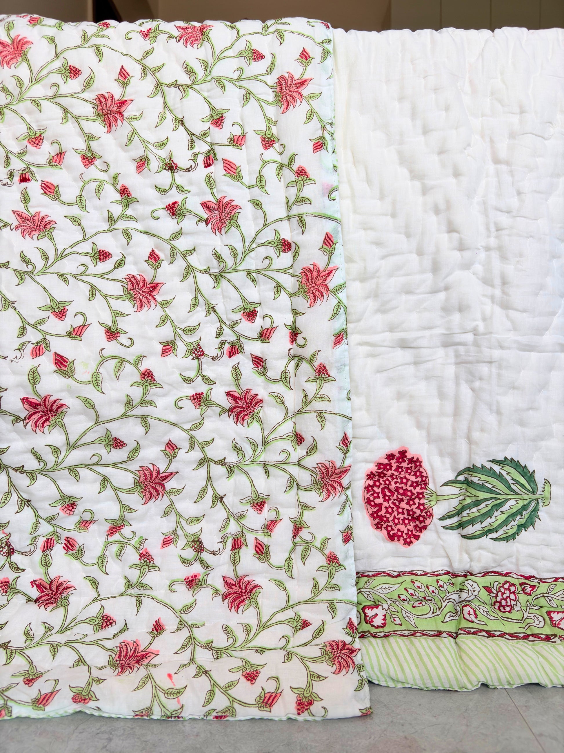 Gul Bagh Reversible Cotton Quilt | Hand Block Printed Jaipuri Razai | Altaire Homes