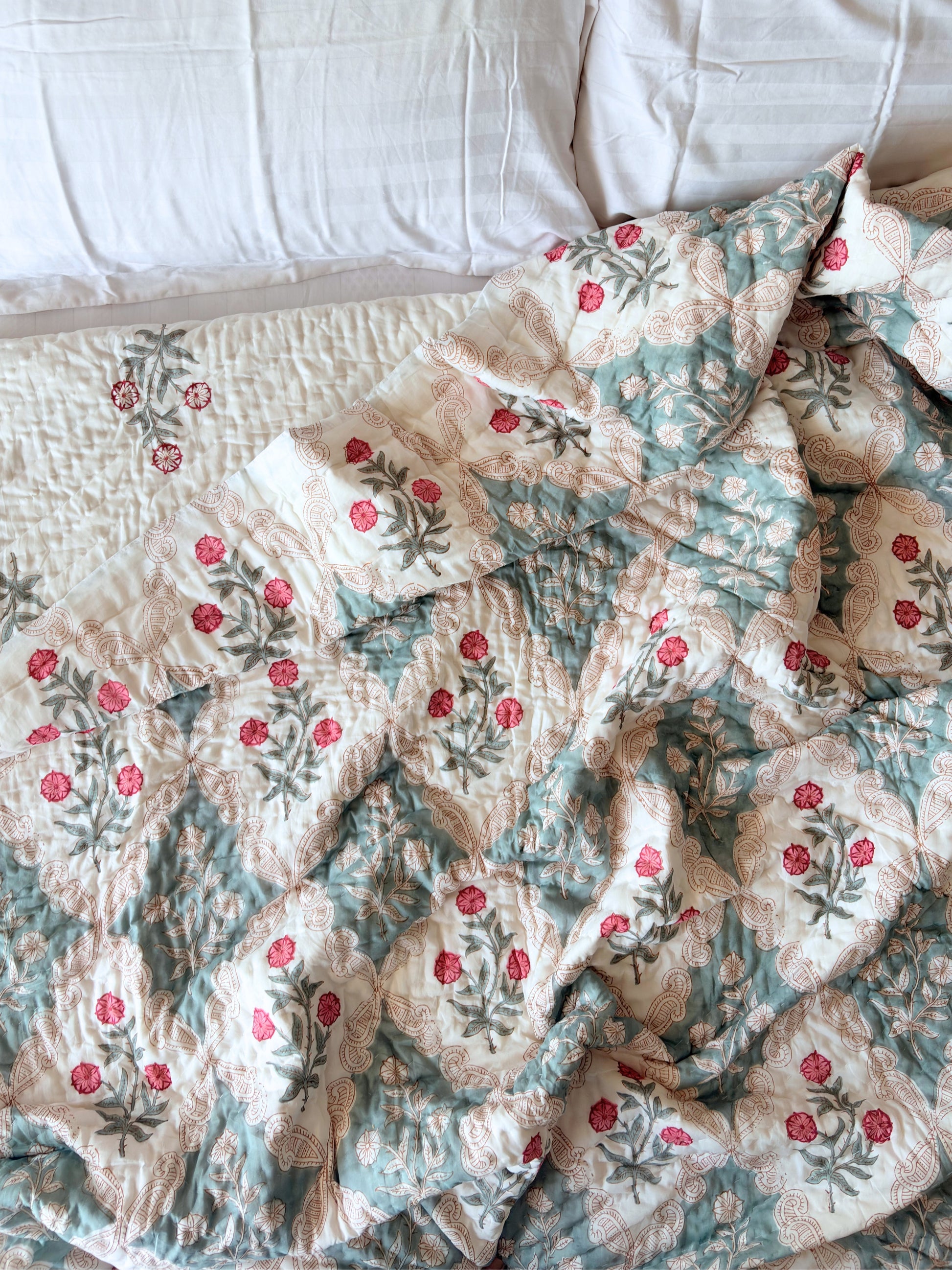 Samode Bagh Reversible Cotton Quilt | Hand Block Printed Jaipuri Razai | Altaire Homes